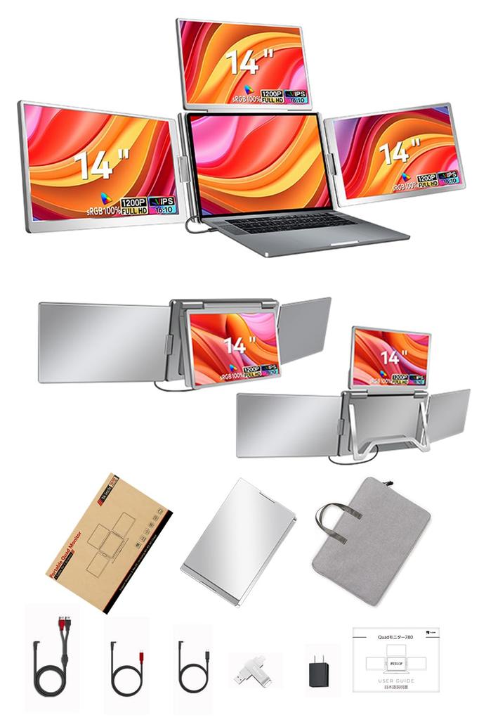 ✅ [Compatible with Windows and MacOS] Triple Display Monitor for 14-inch Laptops. Compatible with screen sizes from 12 inches to 17.3 inches. Designed for optimal comfort for designers, stock traders, gamers, programmers, video editors, and salespeople who need multiple displays, including those who use laptops. By installing a drive, it is compatible with a wide range of devices, including Windows, MacBooks, and AirPorts. Work faster and get four times more done. Enjoy an incredibly comfortable and clear viewing experience. It also comes with a long stand that allows you to freely adjust the screen angle. *Not compatible with: Microsoft Surface series, Chromebooks. Cannot be used with laptops that have a separate screen and keyboard.