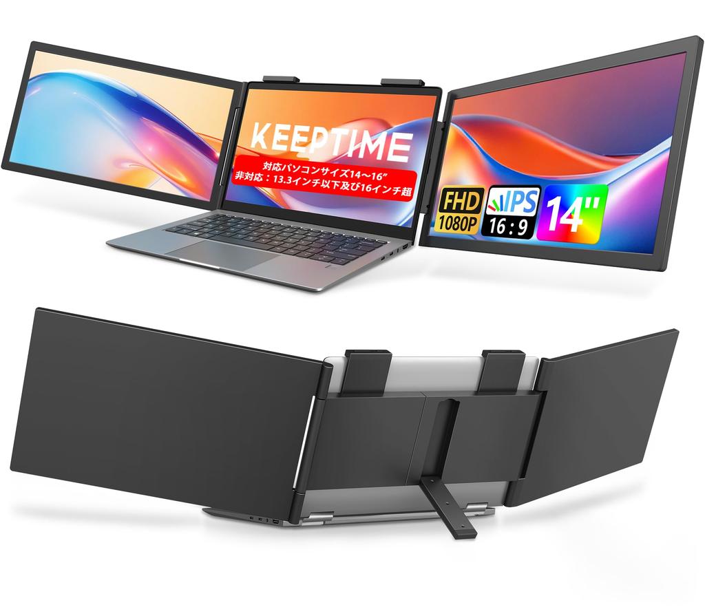 KEEPTIME Dual Display 14-inch Dual Screen Mobile Monitor, 14-16 Inch Laptop Screen Extender, Triple Monitor, Foldable, Type-C Connection, FHD 1080P IPS Panel, Compatible with PS4, XBOX, Switch, Windows, and Mac [2026 New Model]