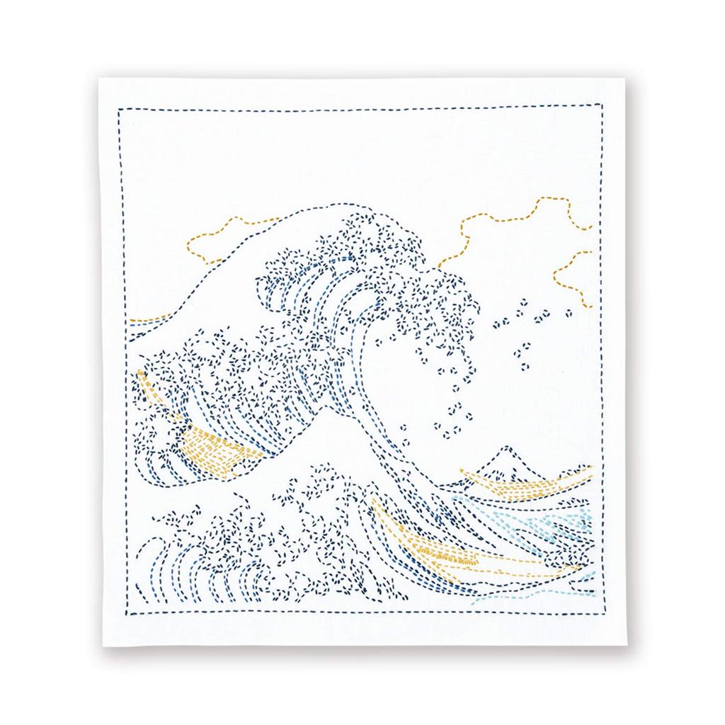 Olympus Sashiko-Garn Spezielles Sashiko-Geschirrtuch-Set Ansichten des Berges Die Große Welle vor Kanagawa (Fein) """Sechsunddreißig Fuji" OLY-SK408"""