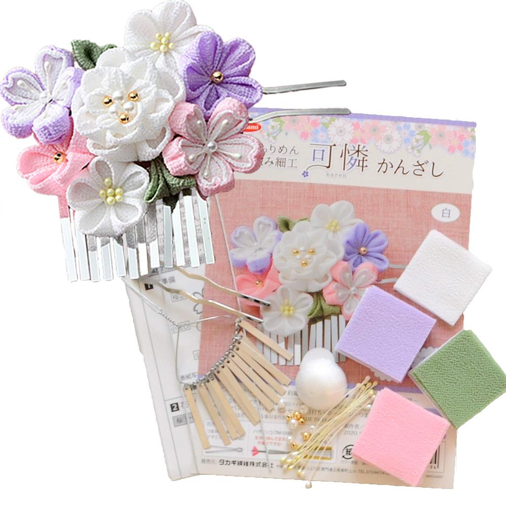 Takagi Fiber Panami Tsumami Zaiku Handgefertigt Lieblich Kanzashi Haarschmuck LH454 Set, Verzierung, Materialien, Zubehör, (Weiß)