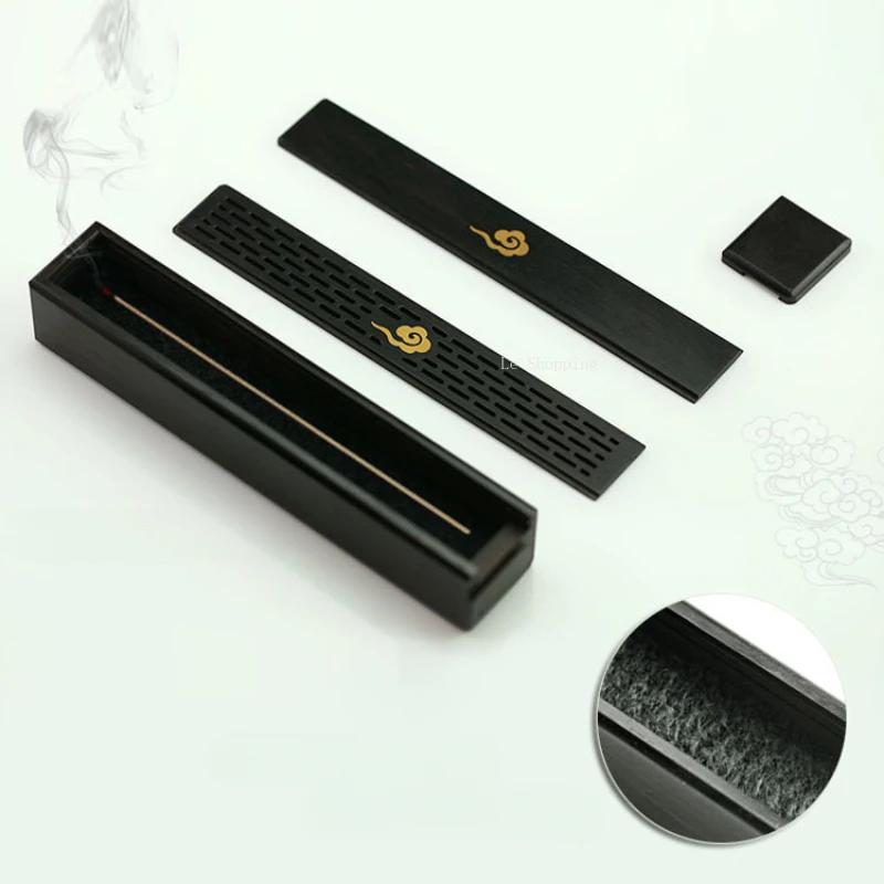 Sandalwood Auspicious Clouds Multi-functional Stick Incense Box/Carved Pattern Portable Indoor Incense Store The Joss Stick Box