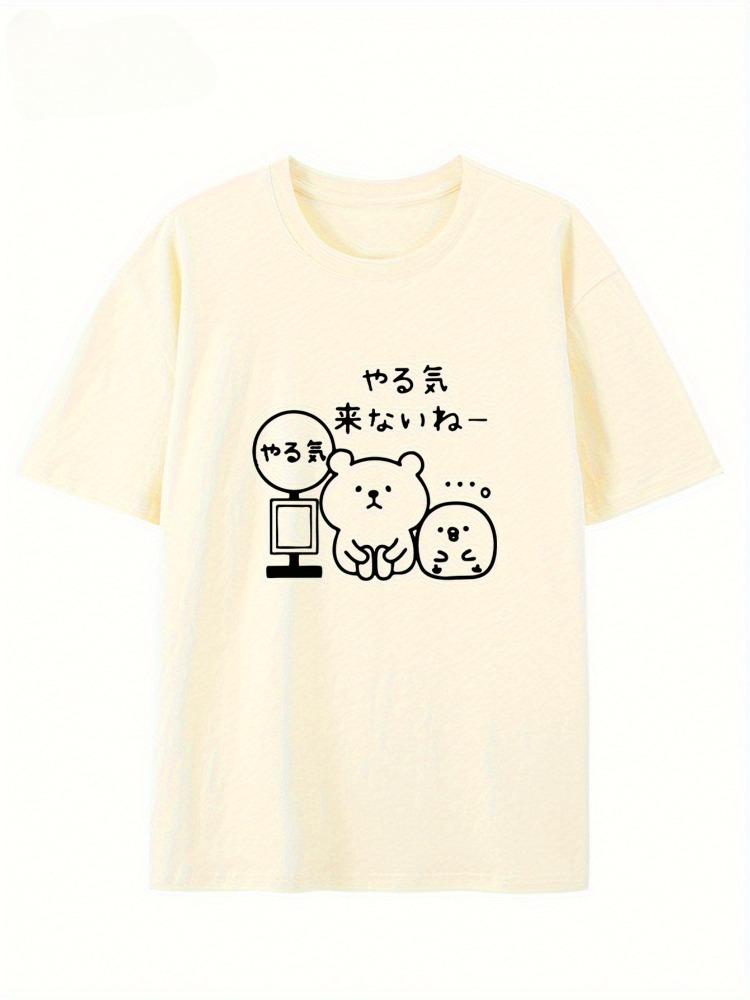Womens Japanese Anime Print TShirt Comfortable Crew Neck Casual Short Sleeve Top Fun Design for Home Everyday Wear