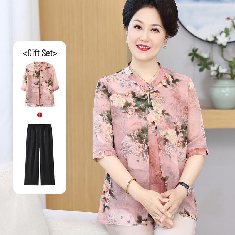 Petite Stylish Breathable Shirt Set for Middle-aged Women