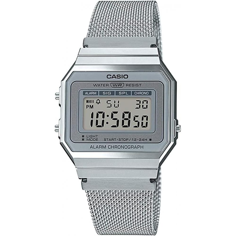 The CASIO Digital Watch Vintage Series A700WM-7A features a metal mesh band design suitable for both men and women, offering a stylish appearance. Key features include a stopwatch, alarm, time correction, LED backlight, and auto calendar, with an average monthly deviation of ±30 seconds providing reliability. This product combines a unique appearance of case and mesh band, complementing a variety of fashion styles.
