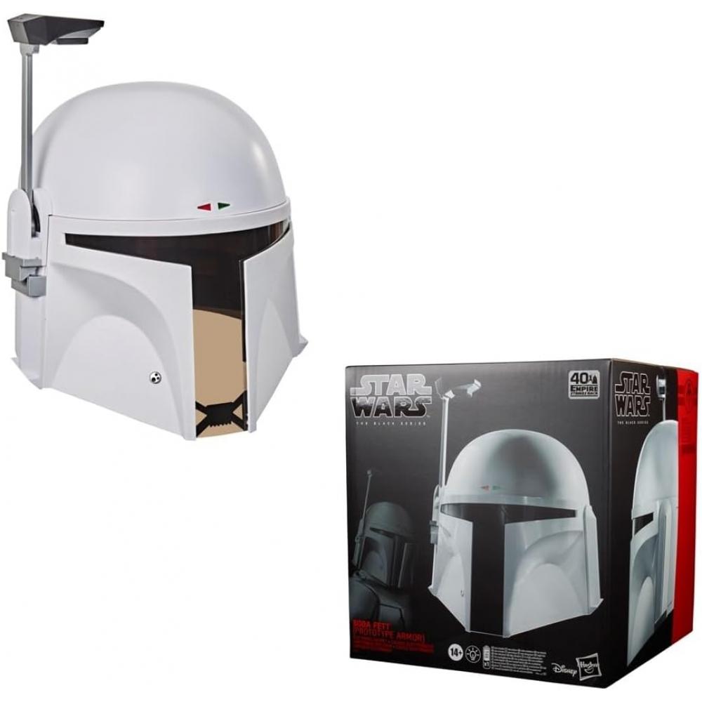 Die Hasbro Star Wars Black Series Boba Fett (Prototyp-Rüstung) Premium Elektronischer Helm ist ein Rollenspielartikel zum Thema Star Wars Episode V / Das Imperium schlägt zurück. Dieser Helm ist mit LED-Leuchten und einem Head-up-Display ausgestattet. (HUD) Funktion, die es den Benutzern ermöglicht, ihrer Fantasie freien Lauf zu lassen und die Schlachten von Star Wars zu erleben. Mit sorgfältigem Design und Liebe zum Detail spricht es Star Wars-Fans an.