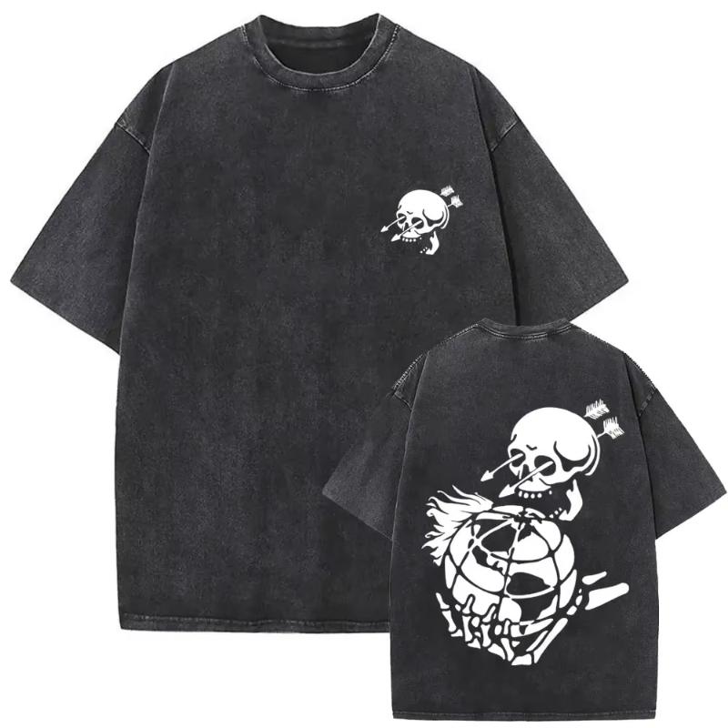 Washed Vintage Forward Observations Group Battle Tribe From The Grave Pull Over Print T-shirts Skeleton Oversized T Shirts