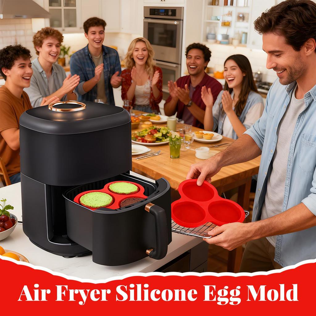 Silicone Molds for Air Fryer 3-Cavity Egg Mould Silicone Air Fryer Cups for Small Cakes Puddings Hamburgers Breakfast Sandwich