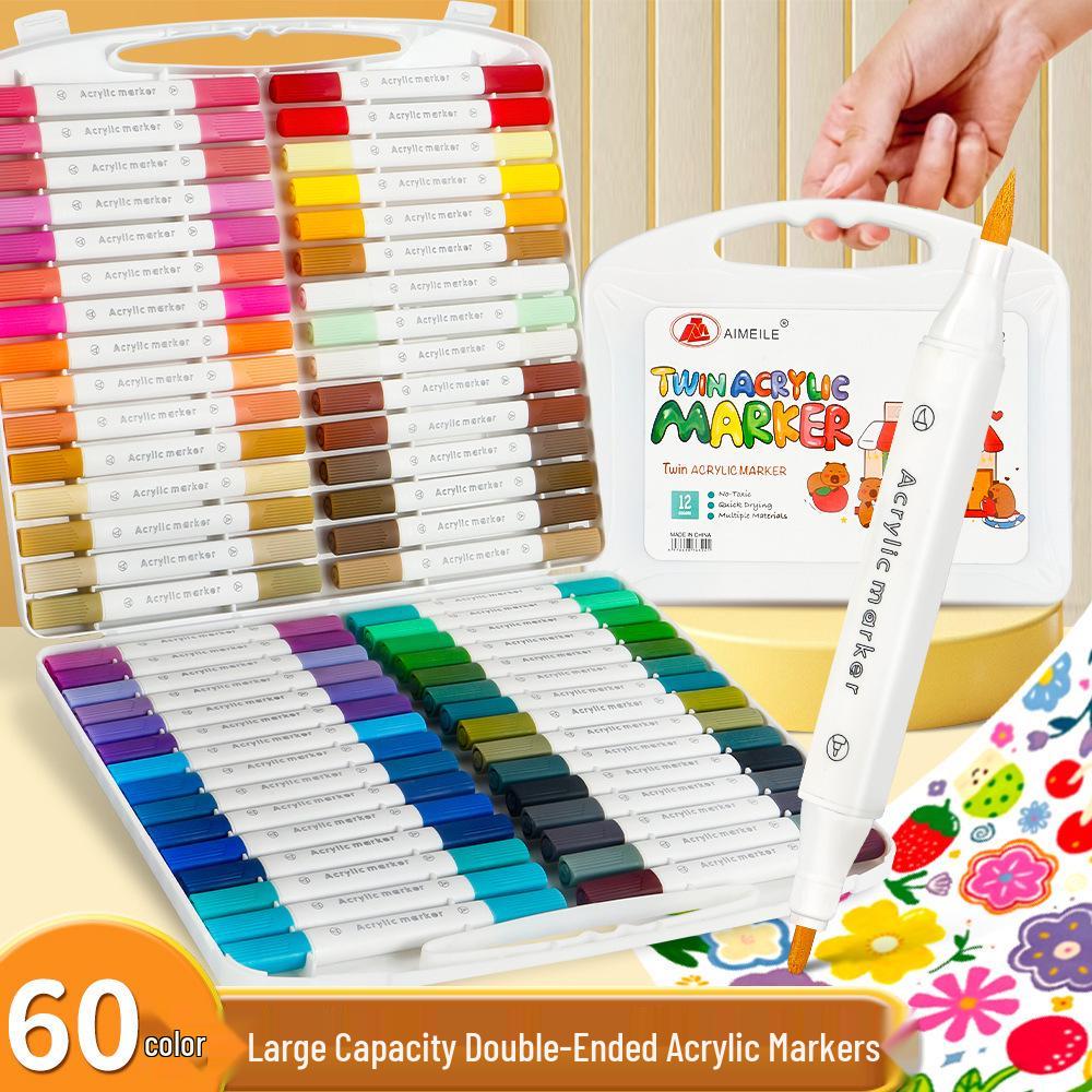 Dreieckiger Doppelspitz-Marker-Stifte-Set - 60 nicht durchblutende, stapelbare Farben für Kunst von Schülern und Kindern.
