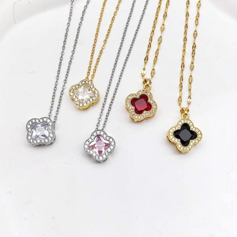 1 Pcs Lucky Flower Clover Copper Pendant Necklace Steel Clavicle Chain Women's Girls' Elegant Gift Accessories