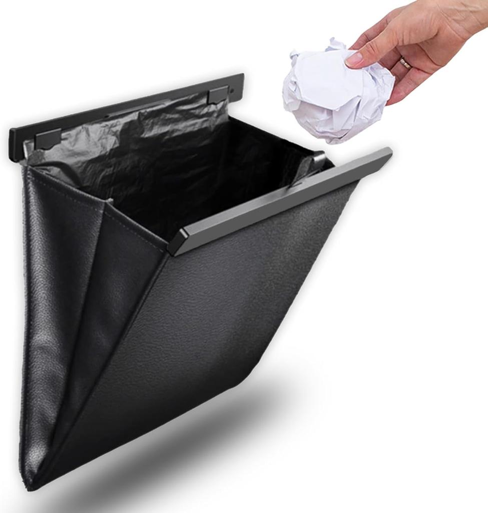 Car trash compatible with various car Includes hooks for storage and a hanging Convenient car accessory can, models. bag. (black).