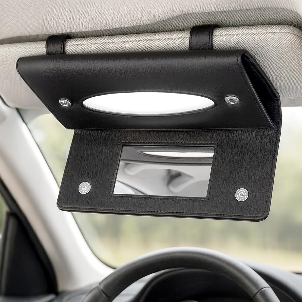 Car Tissue Hanging Car Sun Visor Box Storage Universal Automotive Part Mirror Type Box, Box, Rack, (Makeup - Black)