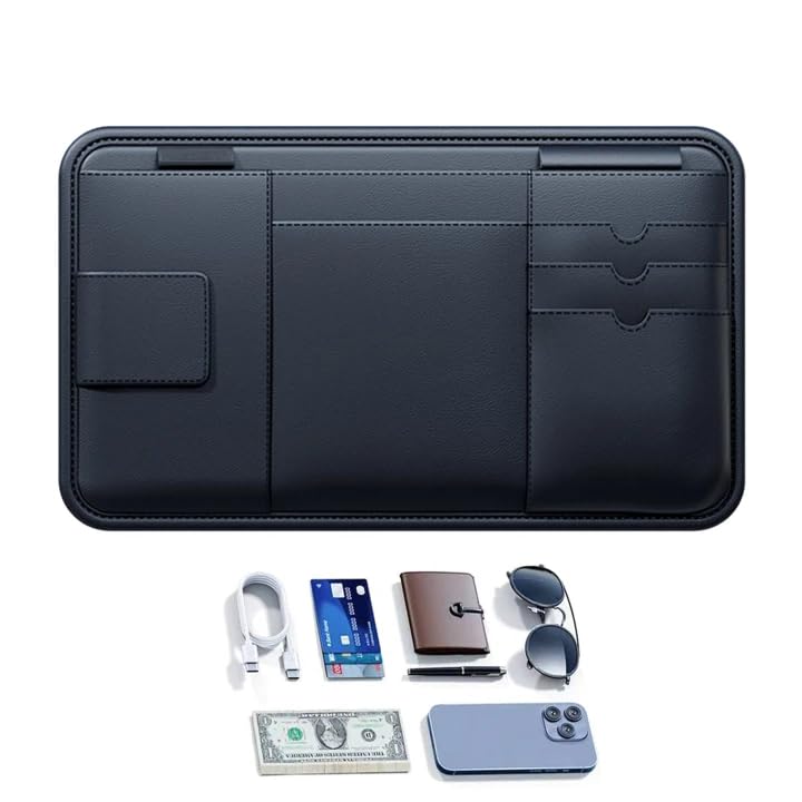 ADOFUN Sun Visor Pocket Sunglasses Holder Car Accessory Case Glasses Holder PU Leather Strong Magnetic Car Eyeglass Holder Multifunctional Holds