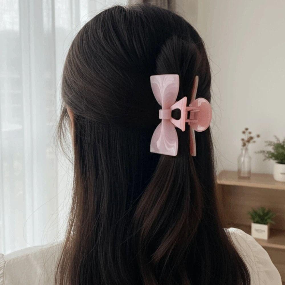 Sweet Acetic Acid Hair Claw Waterproof Contrasting Colors Bow Hairgrips Bownot Shark Clip Women