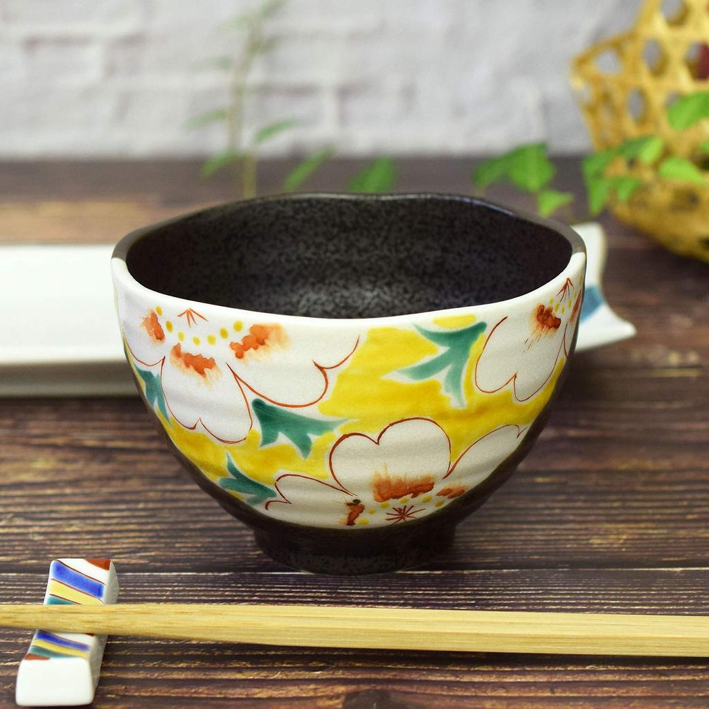 Waza no Kura Stilvolle Teeschale aus Kutani-Keramik mit Blumenmuster Luxuriös Japanisch Hergestellt zum Geburtstag 60. 70. 77. 88. Geschenk Schale, (Gelb), Keramik,