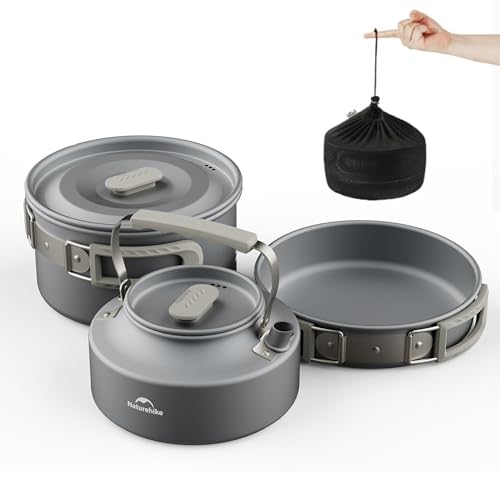 Naturehike Official Store Aluminum Cookware Set - Camping Cookware Outdoor Dish Set 3-Piece Set: Frying Pan, Kettle, Pot - Lightweight, Compact Cookwa