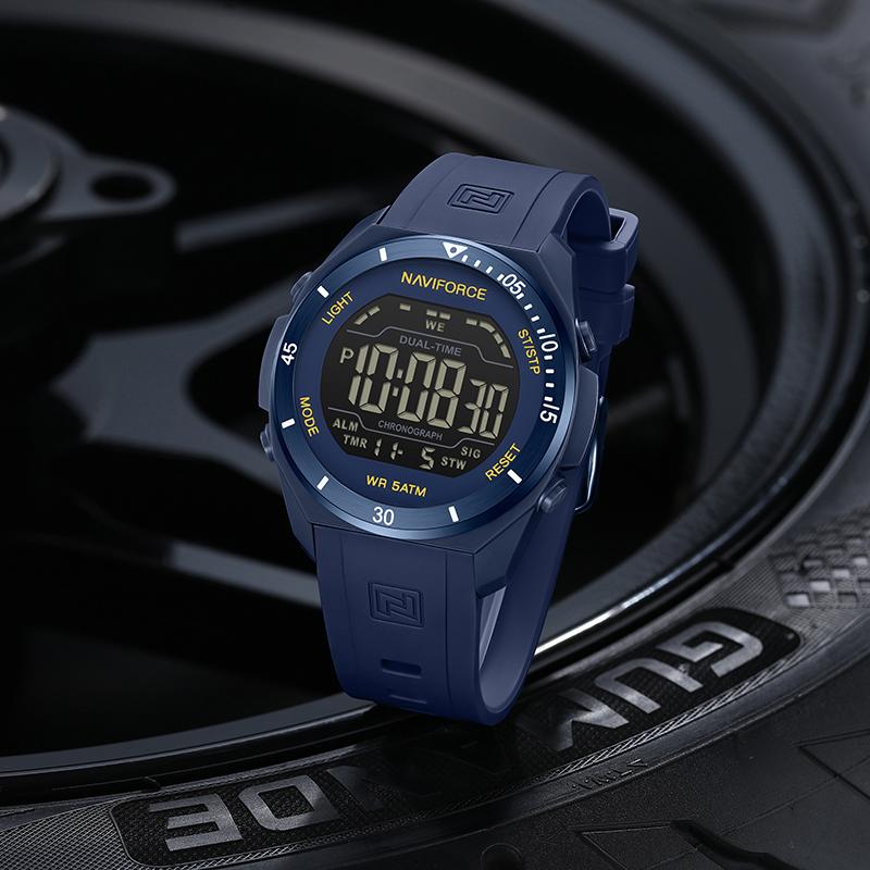 NAVIFORCE Original DIgital Watch Men LCD Display Calendar Date Chronograph Alarm Night Pattern Silicone Strap Waterproof Boys Watch NF7138