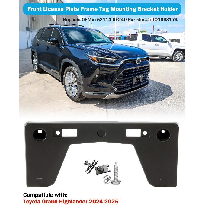 Kennzeichenhalter vorne für 2024 2025 2026 Toyota Grand Highlander Stoßfänger vorne Kennzeichenhalter Montagehalter Ersetzt # 521140E240
