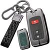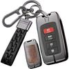 SANRILY Metal Leather 2/3/4 Button Smart Key Fob Cover for Toyota Tacoma 2023 2022 Avalon Camry Corolla RAV4 Highlander Sequoia 2021 Tundra 4Runner