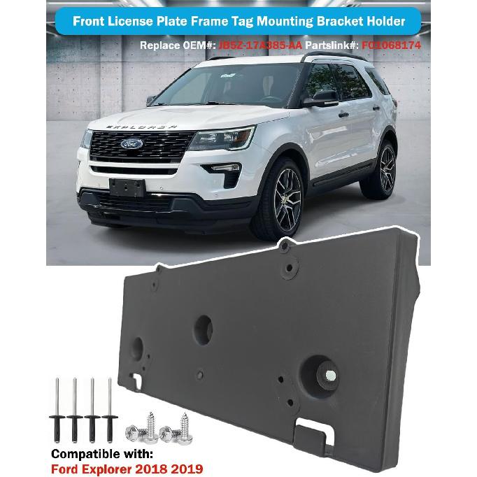 Front License Plate Frame for Ford Explorer 2018 2019 Front Bumper License Plate Holder Mounting Bracket Cover Replace# JB5Z-17A385-AA Partslink#