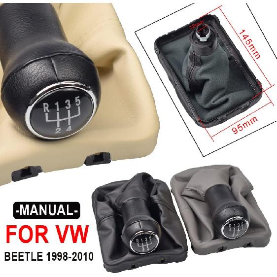 Hacreyatu für VW Käfer 1998 1999 2000 2001 2002 2003 2004 2005 2006 2007 2008 2009 2010 Neuer 5-Gang-Schalthebel Schalthebelknauf Lederbalg (Schwarz)