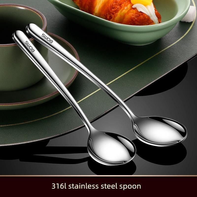 Japanese Imported Household 316L Stainless Steel Spoon, Food-Grade Long-Handled Round-Head Spoon, Soup Spoon, Soup and Stew Spoon, Eating Spoon