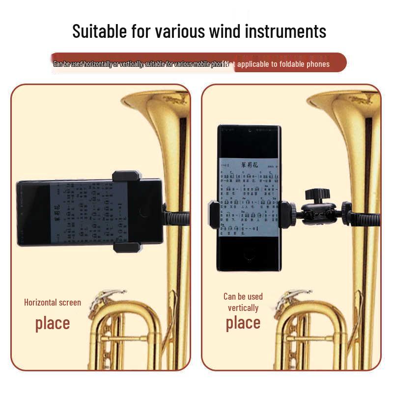 Adjustable Universal Phone Holder for Saxophone Sheet Music - Fits Small to Large Phones, Easy to Install and Use