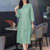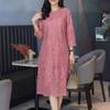 ZANZEA Women Casual Round Neck 3/4 Sleeve Patchwork Lace Sheath Dress
