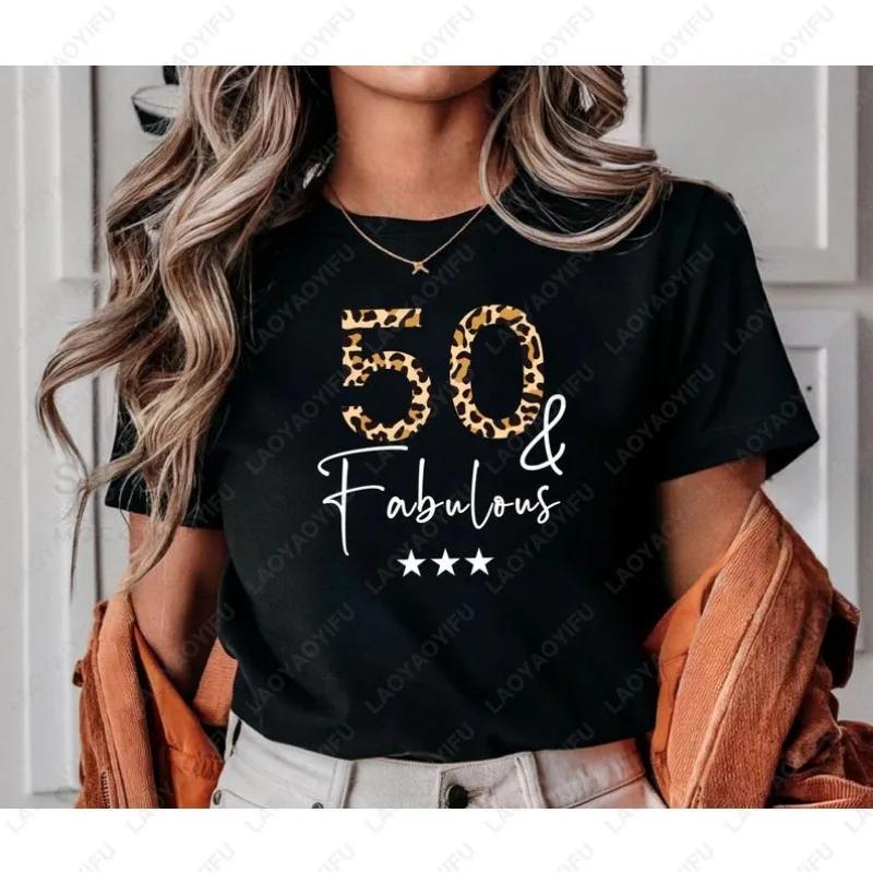 Mothers Day Mama Leopard Tshirt for Woman 50th Fabulous Bithday Age Perfect Gift Classics Aesthetic Tops Cool Cotton Cute Tee
