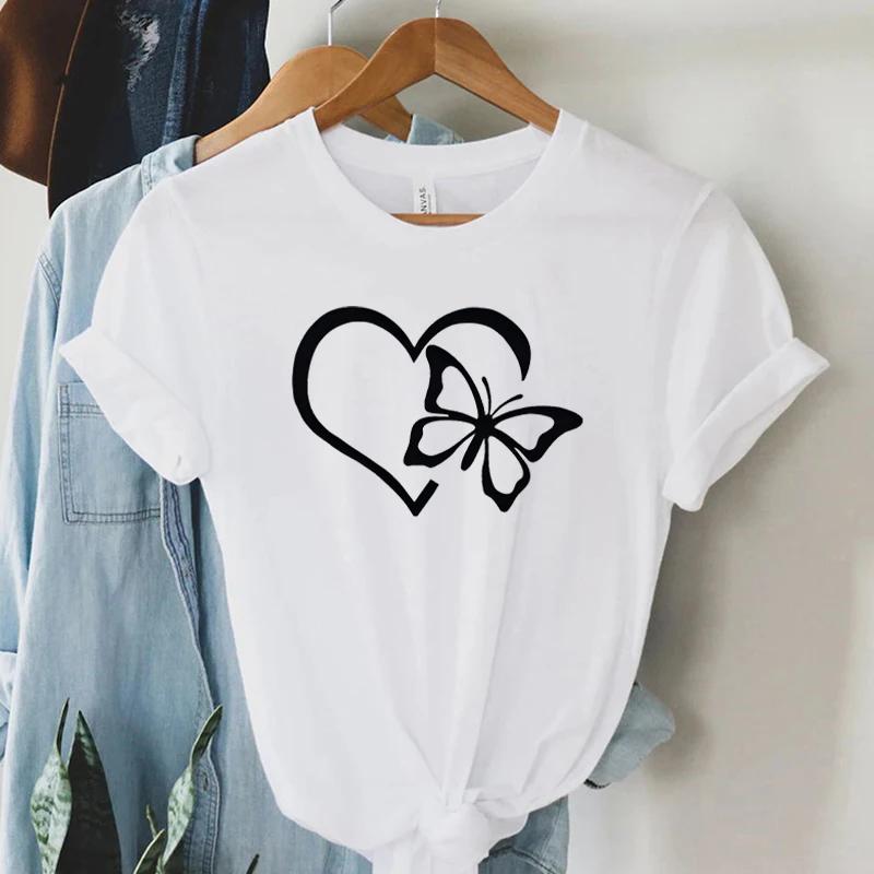 Heart Butterfly Graphic T Shirts Women Funny Hearts Trendy Style Butterfly Lover Gift Womens Tee Shirt Hearts Essential Tops