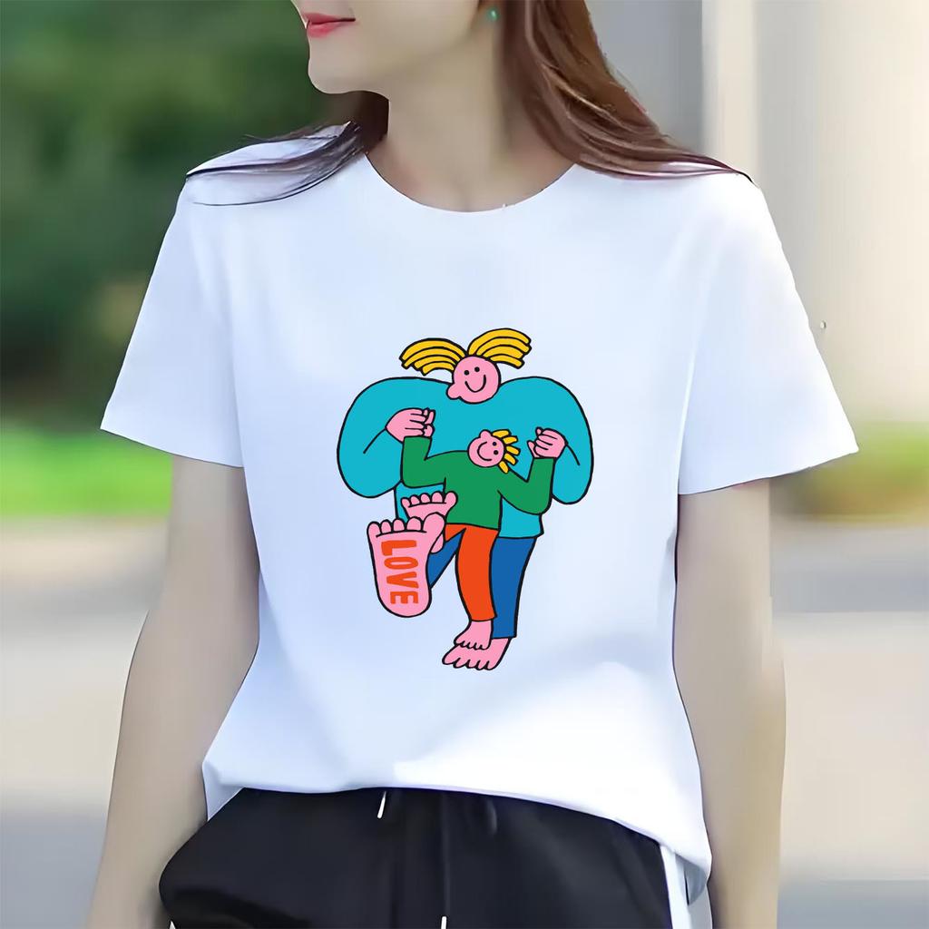 Cute and fun cartoon printed short sleeved round neck Womens Tshirt for spring and summer versatile Womens Tshirt