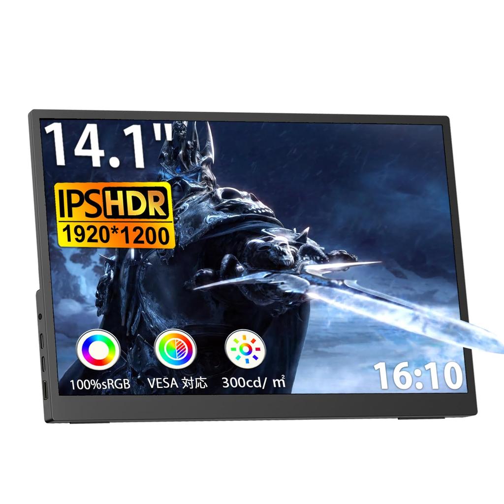 【14.1-inch Full HD IPS Large Screen & High-Quality Experience】This mobile monitor is based on the 14.1-inch standard and features a Full HD IPS panel with a resolution of 1920 x 1280. With a contrast ratio of 1000:1, a brightness of 300 cd/m², a 16:10 aspect ratio, and a wide 178° viewing angle, it reproduces vivid and natural colors. HDR and FreeSync support reduces image stuttering and tearing, making it an excellent gaming monitor. It delivers an immersive viewing experience for games, movies, video conferencing, and more, and is ideal for extended use.