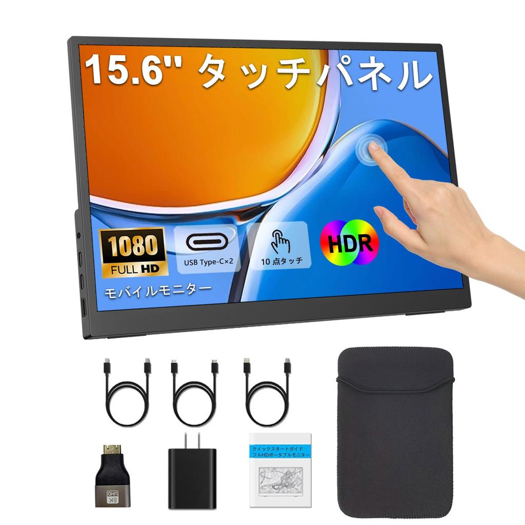 15.6-inch IPS Touchscreen Mobile Monitor, 1920*1080 Resolution, Lightweight, Slim, 16:9 Ratio, Non-Glossy, 100% sRGB Wide Color Gamut, 300nits High Brightness, Type-C/HDMI, Compatible with PS4, PS5, Switch, PC, Mac, and More