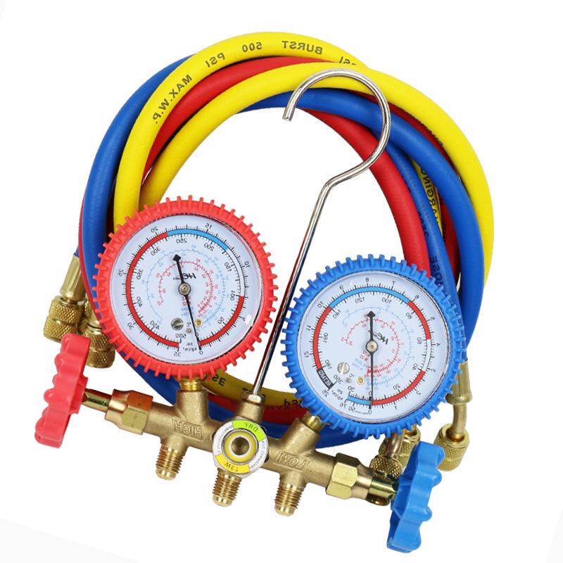 Dual Gauge Car AC Refrigerant Pressure Kit with R134A Can Opener