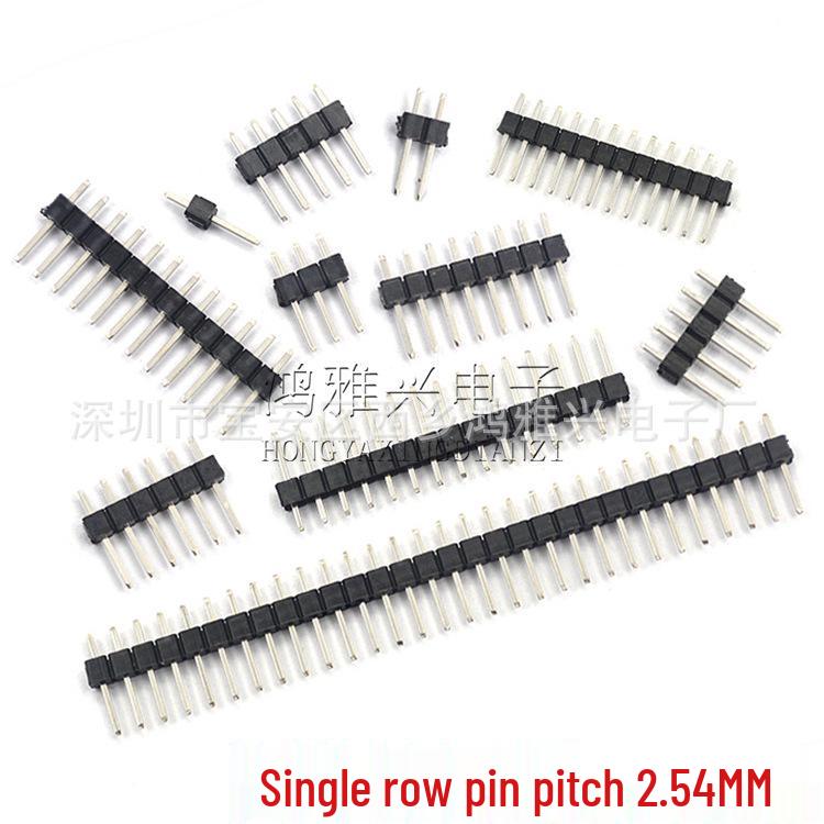 2.54mm Single Row Gold-Plated Copper Pin Header - Straight, 1*2 to 1*40 Pins