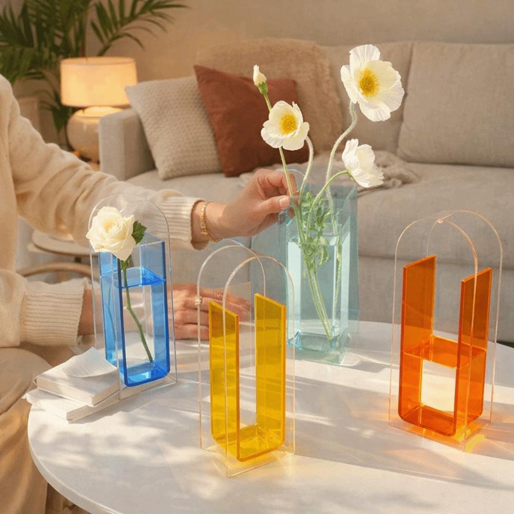 Geometric Acrylic Vase Modern Flower Container Minimalist Hydroponic Planter Tabletop Decoration