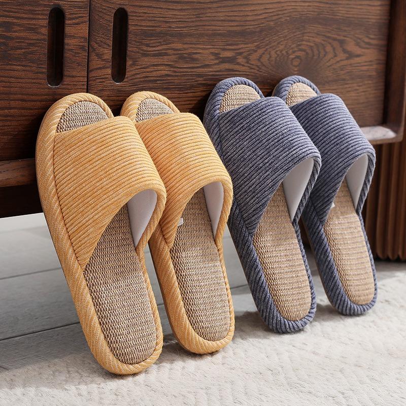 Linen slippers women's summer indoor home use non-slip sweat-absorbing breathable wooden floor sandals men