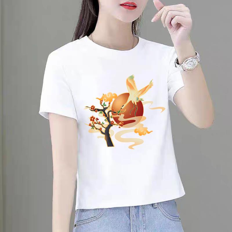 Modal Damen Lässiges Print-T-Shirt Kurzärmelig Harajuku-Stil Grafisches Oberteil Polyesterstoff Mode-Oberteile