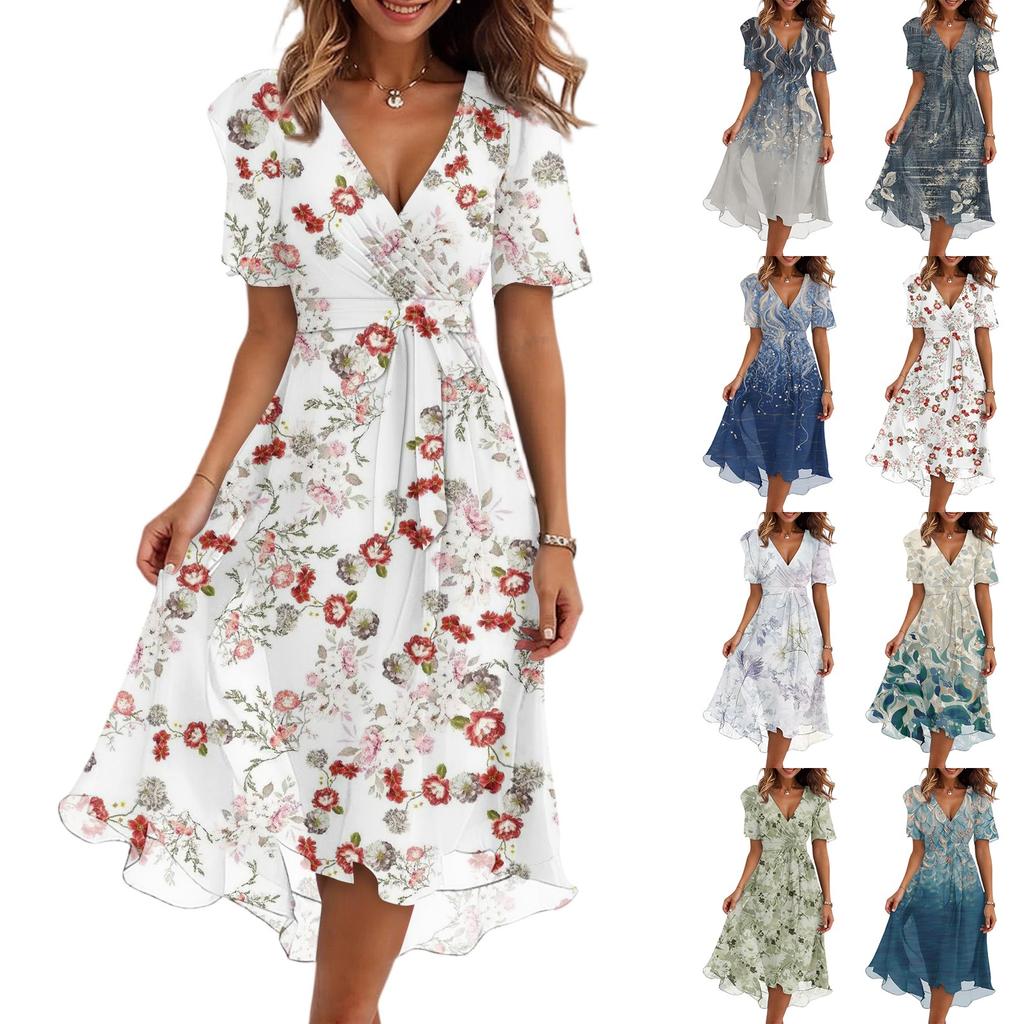 Damen Mode Lässig V-Ausschnitt Kurzarm Rüschen Vintage Bedruckte Kleider Wir können garantieren, dass das auf den Fotos gezeigte Gesamtbild korrekt ist, jedoch kann es Unterschiede geben, wie es beim Tragen aussieht. Dies hängt von anderen physikalischen Variablen ab, z. B.. persönliche Körpergröße, Körperform, Leib Anteil, Höhe usw.. Beschreibung: MATERIAL: Unsere Sommerkleider bestehen aus einem hautfreundlichen, weichen und elastischen Stoff, der atmungsaktiv ist, nicht einläuft und außergewöhnlichen Komfort bietet und Ihnen ein angenehmes Tragegefühl bietet. PASSEND: Kombinieren Sie es mit einer Jeansjacke für einen entspannten Tag oder mit High Heels für die Arbeit.. Fügen Sie Schmuck und Absätze für den Abend hinzu oder Sandalen und eine Umhängetasche für das Wochenende. GELEGENHEIT: Dieses Kleid ist vielseitig für verschiedene Anlässe wie den Alltag, Freizeitausflüge, Arbeit, Abendveranstaltungen, Wochenendtreffen, Strandausflüge, Urlaub und Reiseabenteuer geeignet. Geschlecht:Frauen Material:Länge des Polyesterkleides:Knielange Dekoration:Keine Silhouette:A-Line Was Sie bekommen:1 Kleid Paket enthält: