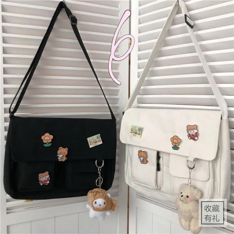 Women Simple Messenger Bag Casual Satchel Ladies Handbags Shoulder Bag Pouch Girls Sweet Printed Canvas Cross School Bags Purses