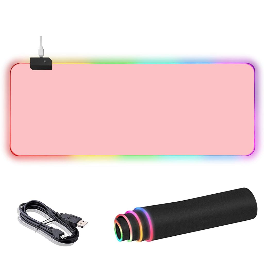 Large Gaming Mouse Pad with 12 RGB Lighting Effects, Waterproof Multi-Spandex Surface, Non-Slip Rubber Base, 800*300*4mm (Pink)