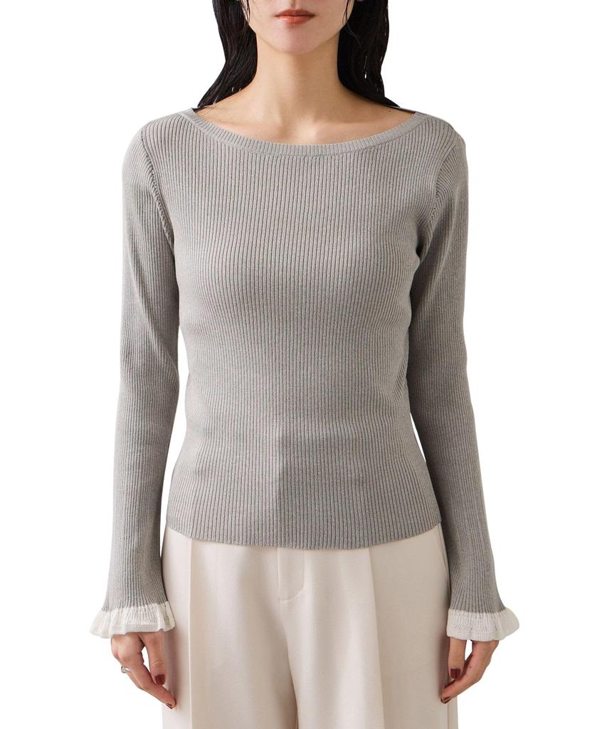 Styling-Tipps: Der Körper ist ein schlichter Strick, was ihn zu einem vielseitigen Stück sowohl für lässige als auch für formelle Anlässe macht.. Wir empfehlen, es als Basisschicht unter einem Cardigan oder einer Jacke zu tragen, sodass sich die Spitzenverzierung an den Ärmelbündchen hervorblitzen lässt.