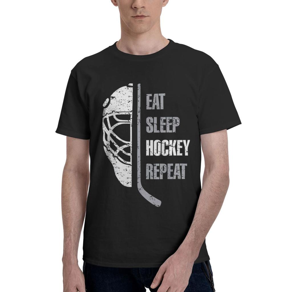 Eat Sleep Hockey Repeat 100 Cotton Casual Breathable Confortable Summer Mens Clothing Brands Mens Shirt