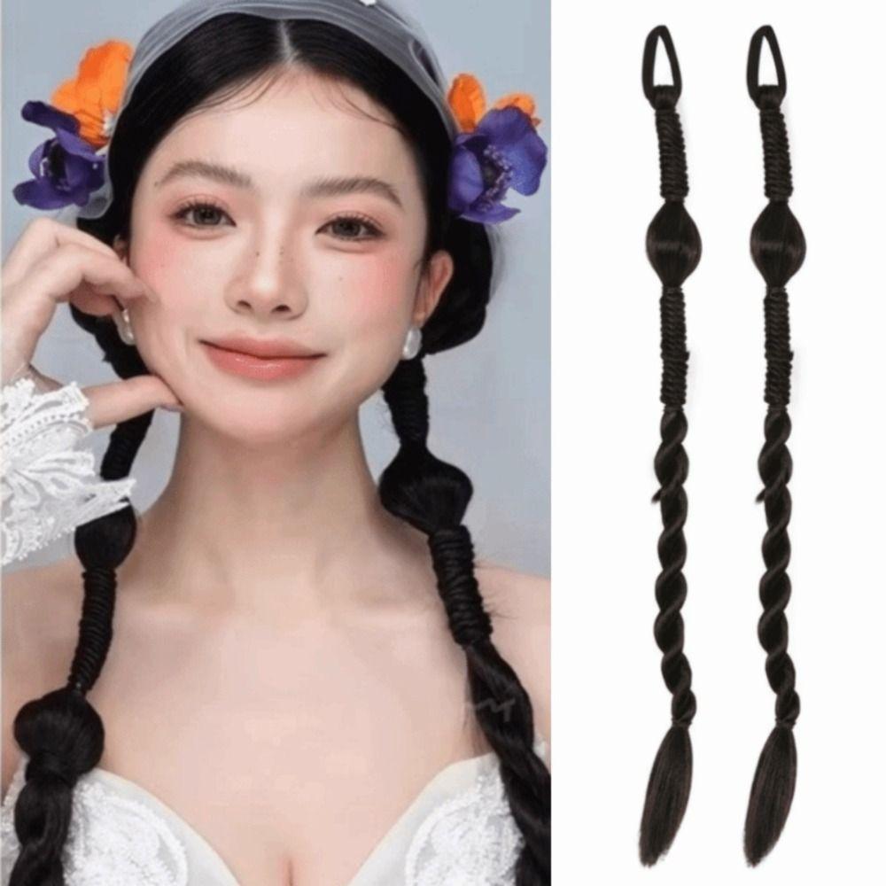 2 Stück Haarverlängerungen Laterne Doppelte geflochtene Perücke Handgefertigt Neue chinesische Stil Perücke Party