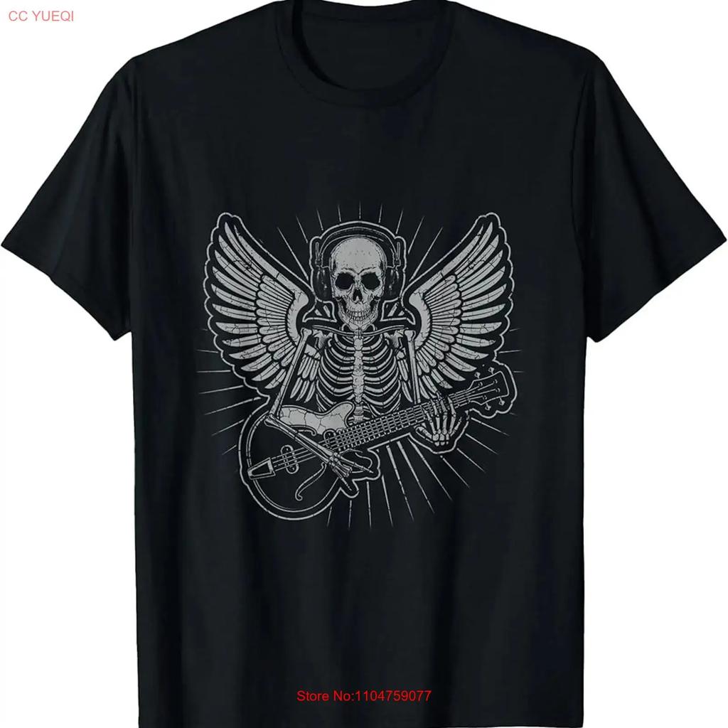Rockmusik Schädel Skelett DJ Mit Engelsflügeln Gitarre Party T-Shirt vintage Gewaschen Atmungsaktiv Bequem Designer Kleidung