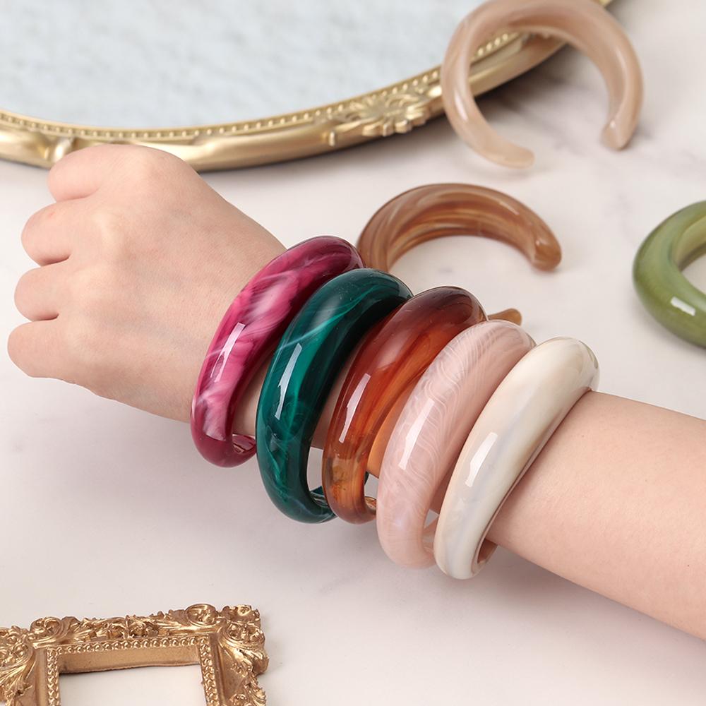 Smooth Round Acrylic Cuff Bangles for Women Vintage Exaggerated Jelly Color Smudging Bangle Wide Resin Bracelet Accessories
