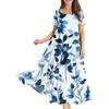 Damen Sommer Rundhals Kurzarm Geblümtes Boho Lockeres Kleid