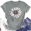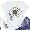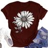 Lässiges T-Shirt für Damen mit Rundhalsausschnitt, Blumendruck, kurzärmelig