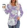 Damenmode Lässig Plissiert Rundhals Vintage Blumendruck Langarm T-Shirt Top