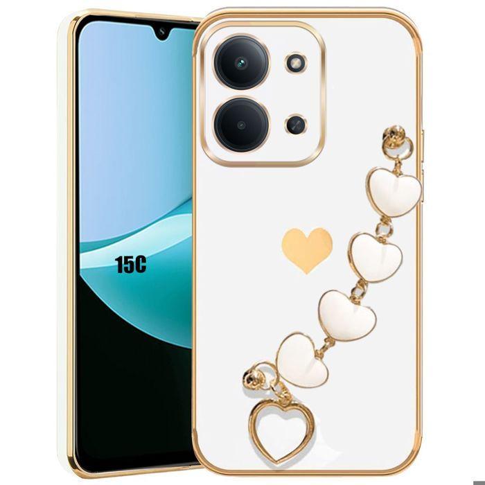 Hülle für Xiaomi Redmi 15C 4G/5G, Kratzfester Silikonschutz mit Herz-Armband - Weiß