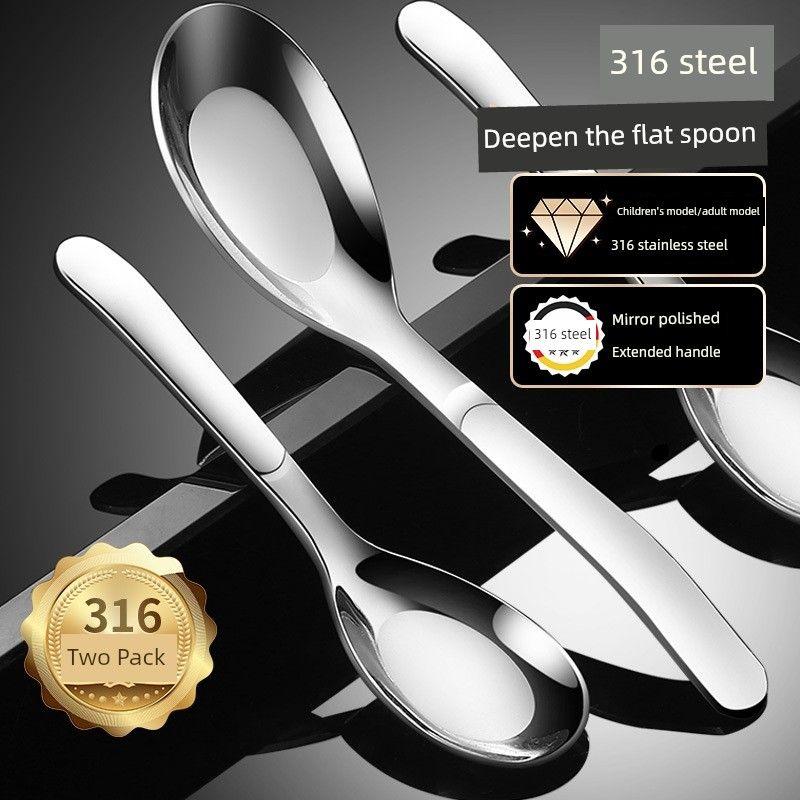 316L Stainless Steel Spoon, New Korean-Style Flat-Bottomed Spoon, Restaurant Hotel Household Dining Spoon, Soup Spoon, Dessert Spoon